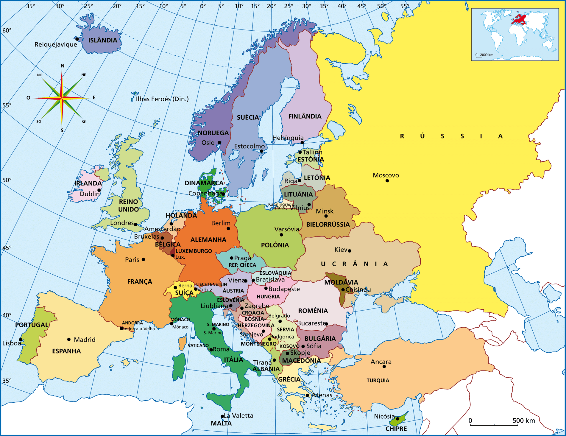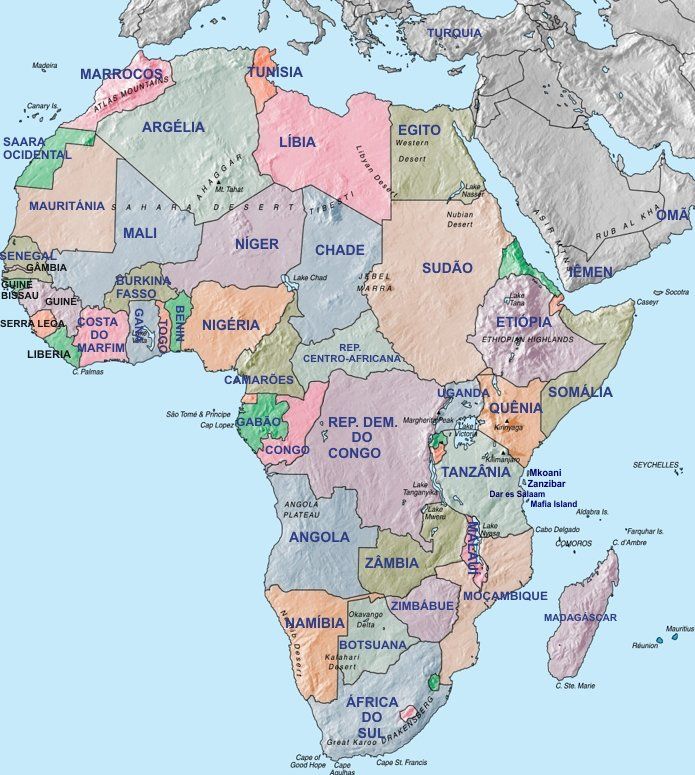 Todos os destinos internacionais, nos diversos continentes e países.